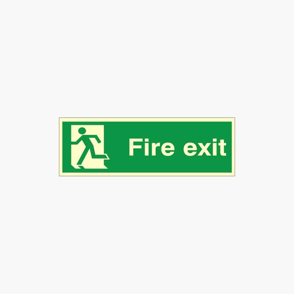 Fire exit signs are designed to clearly explain the location of the nearest emergency exit in the event of fire or any other emergency. Often suspended from the ceiling or fixed to a wall, fire exit signs display directional arrows or a running figure and the words ‘fire exit’ to direct people off the premises. These signs are photoluminescent to ensure they’re seen even in low visibility conditions.